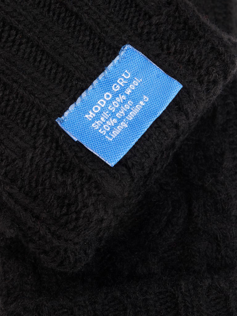 Перчатки торговой марки MODO производства Китай выполнены из текстильной шерсти. Состав материала верха: 50% шерсть, 50% нейлон. Без подкладки. Декоративные элементы - фигурное вязание на лицевой части, орнамент из кос. Длина манжеты от нижней точки большого пальца до края перчаток - 10 см. Длина пальцев - средняя. Модель без размера, подходит на любую полноту руки от размера XS до L
