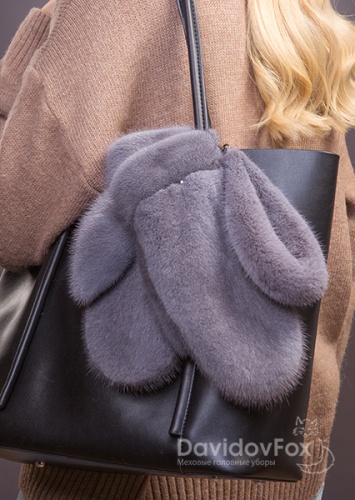 Варежки норка серо-голубые
