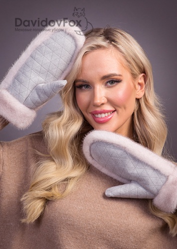 Варежки норка замша колотый лед
