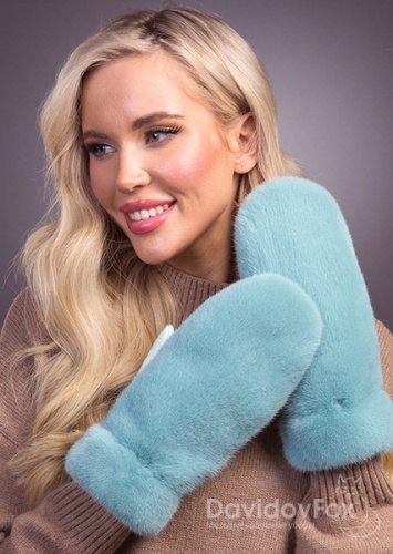 Варежки норка замша мята