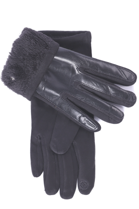 Перчатки женские сенсорные (нашивка на кончике указательного пальца), выполнены из мягкой иск.замши на плюшевом покладе, сверху вставка из иск.кожи.