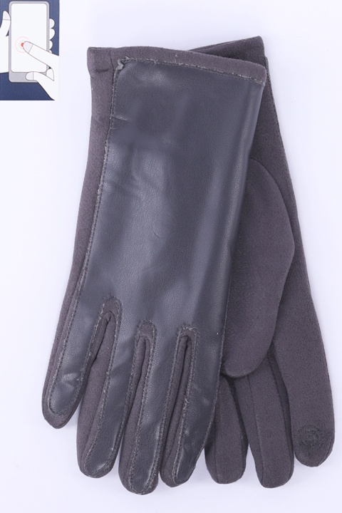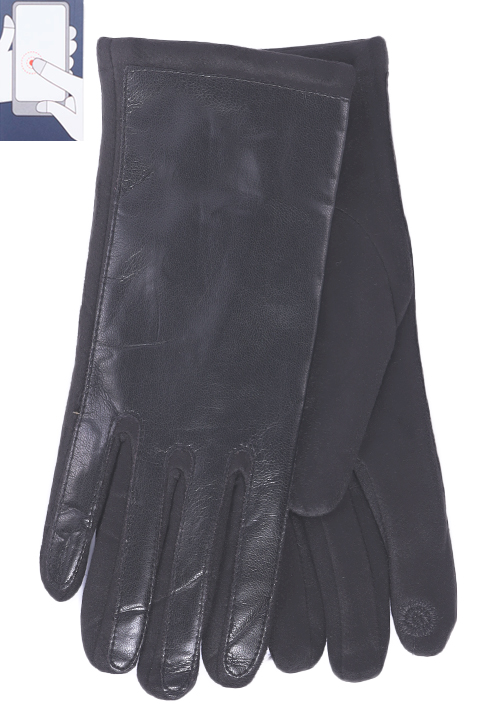 Перчатки женские сенсорные (нашивка на кончике указательного пальца), выполнены из мягкой иск.замши на плюшевом покладе, сверху вставка из иск.кожи.