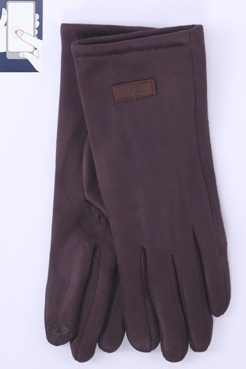 Перчатки женские сенсорные (нашивка на указательном пальце) утепленные сверху мягкая иск.замша, внутри подклад велсофт.