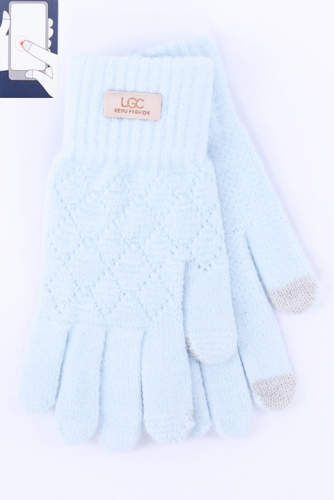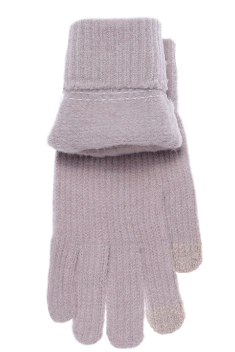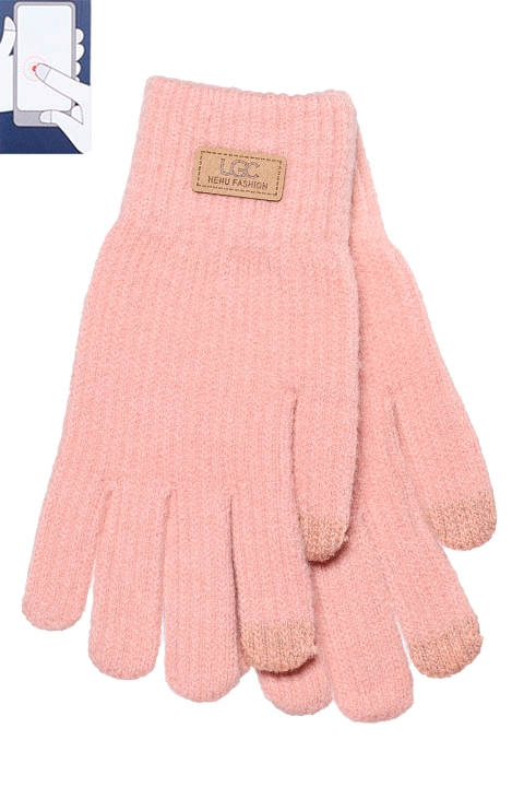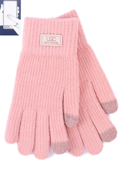 Перчатки женские одинарные, внутри начес. Пряжа на кончиках указательного и большого пальца заканчивается нитями другого цвета, что позволяет пользоваться сенсорным экраном, не снимая перчаток.
