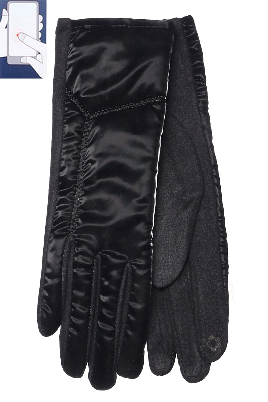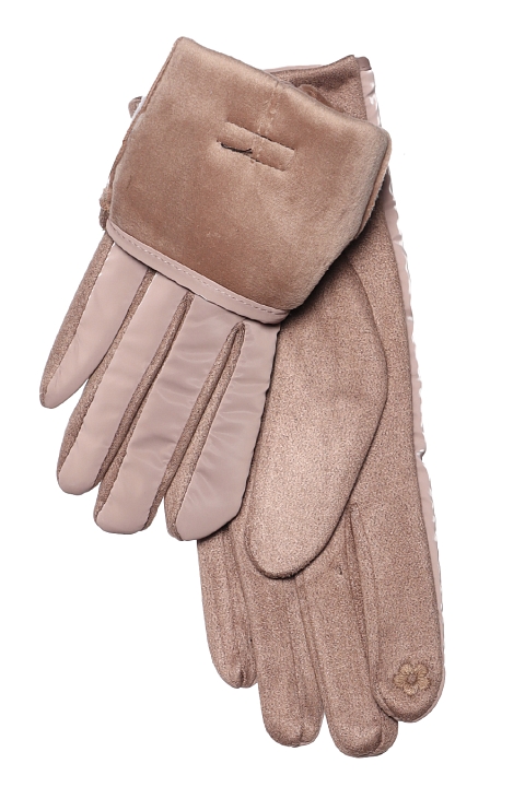 Перчатки женские сенсорные (нашивка на кончике указательного пальца). Комбинированные: ладонь иск.замша на велюровой основе. Сверху - курточная ткань на подкладе велюр + тонкий слой синтепона.