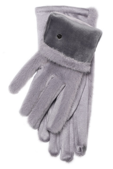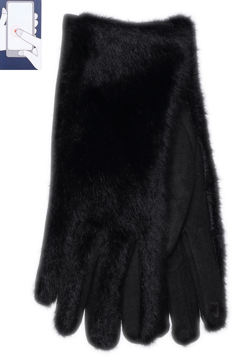 Перчатки сенсорные (нашивка на кончике указательного пальца). Комбинированные: ладонь иск.замша на велюровой основе, сверху - иск.мех на велюровой основе.