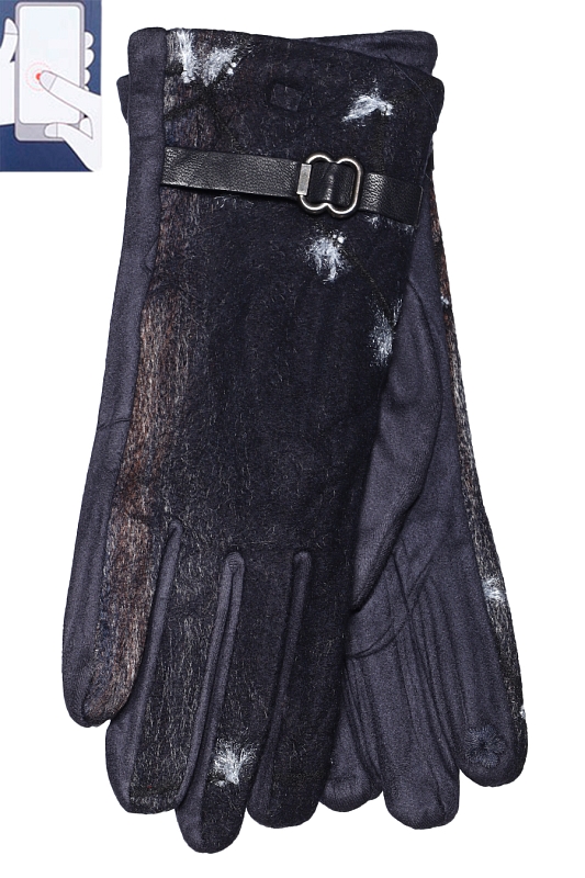 Перчатки женские сенсорные (нашивка на кончике указательного пальца). Комбинированные: верх - трикотажное сукно, ладонь - иск.замша на велюровой основе.
