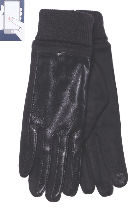 Перчатки женские сенсорные (нашивка на кончике указательного пальца). Комбинированные: ладонь иск.замша на основе велюра, сверху - эко-кожа.