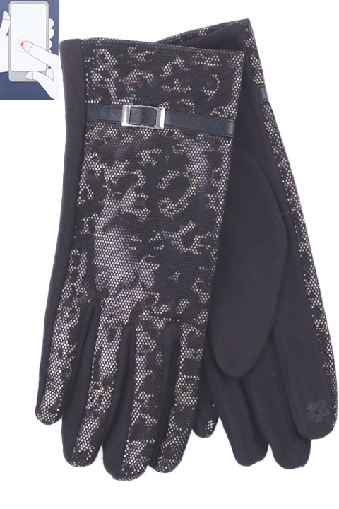 Перчатки женские сенсорные (нашивка на кончике указательного пальца), ладонь - иск.замша, верх - трикотаж под кожу на велюровой основе.