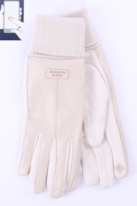Перчатки женские сенсорные (нашивка на кончике указательного пальца). Комбинированные: ладонь иск.замша на основе велюра, сверху - эко-кожа.