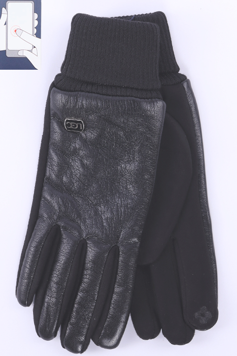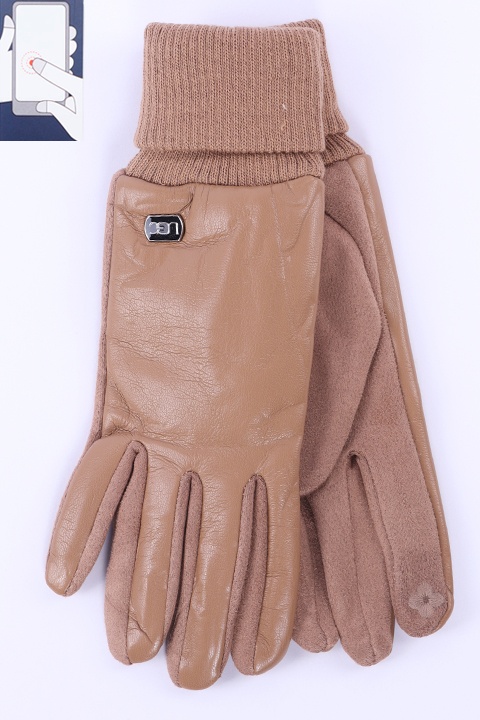 Перчатки женские сенсорные (нашивка на кончике указательного пальца). Комбинированные: ладонь иск.замша на основе велюра, сверху - эко-кожа.
