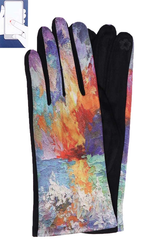 Перчатки женские из иск.замши на велюровой основе. Сенорные (нашивка на кончике указательного пальца).