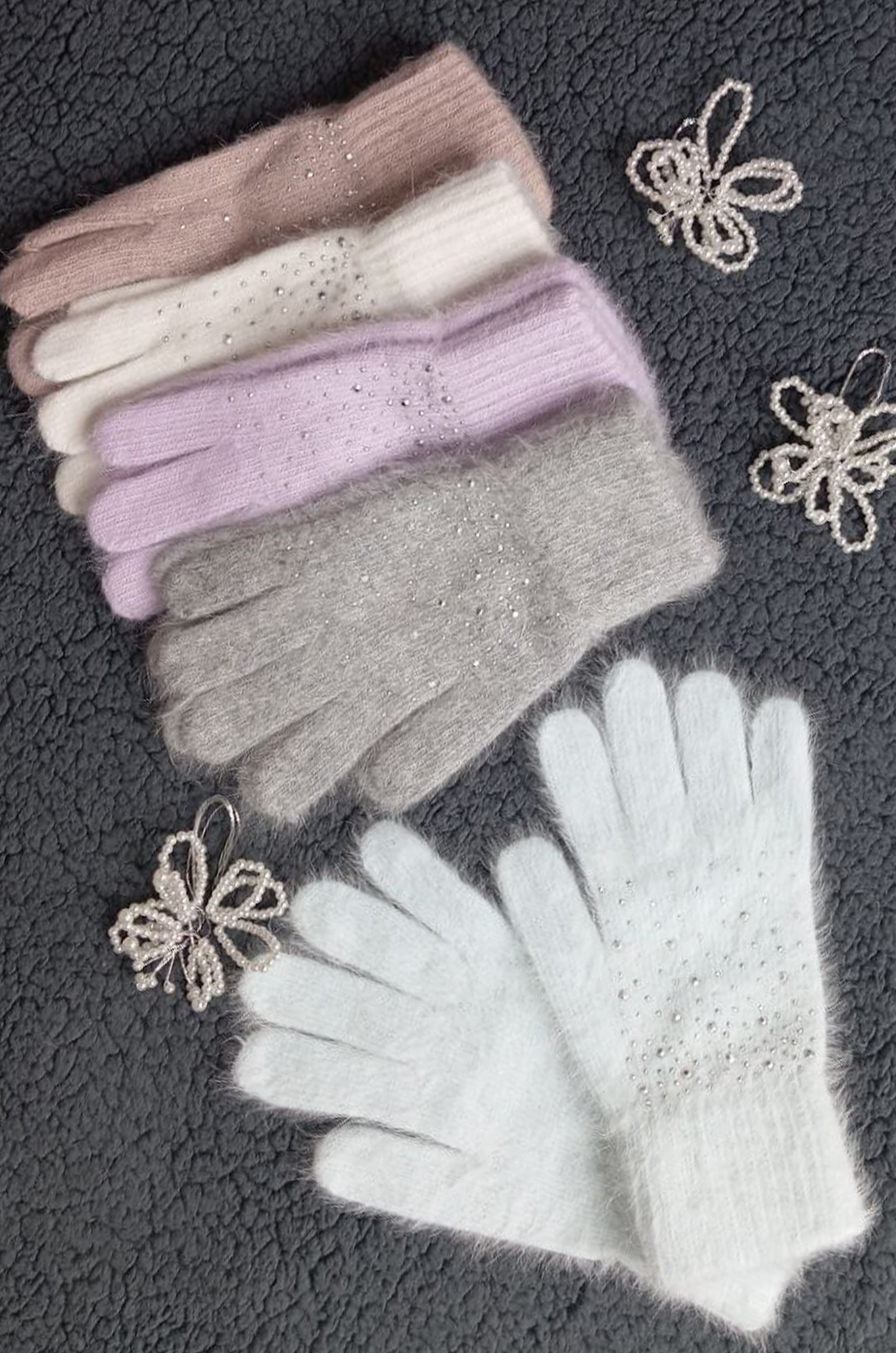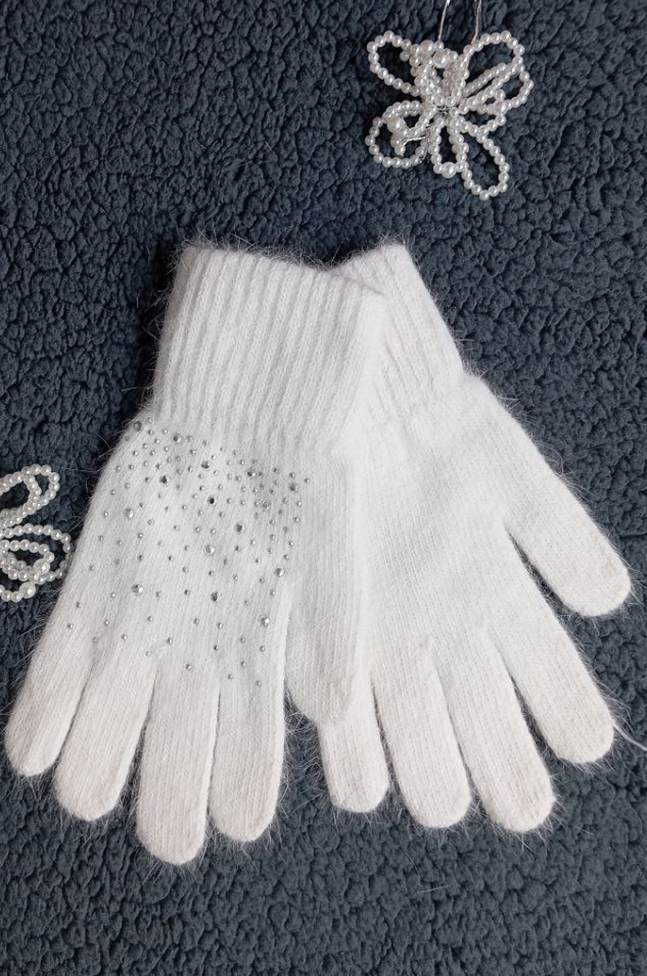 Очень тёплые и уютные шерстяные перчатки одинарной вязки станут самым любимым аксессуаром. Россыпь из страз придаст настроения.