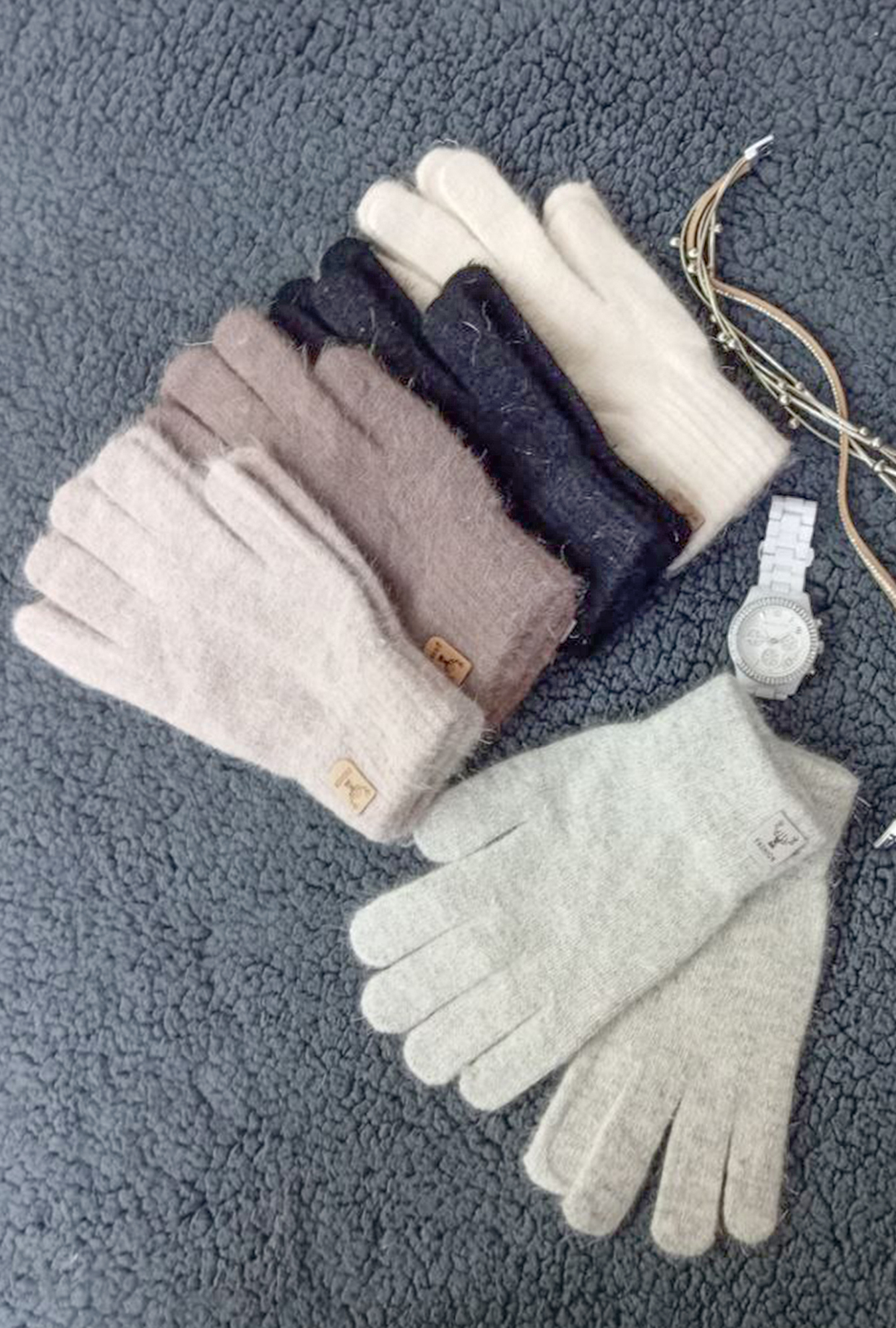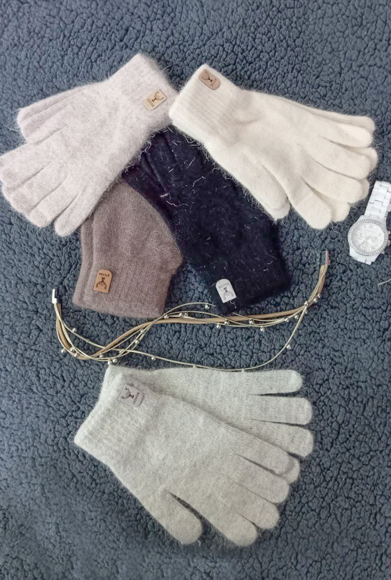Однотонные шерстяные женские  перчатки одинарной гладкой вязки.