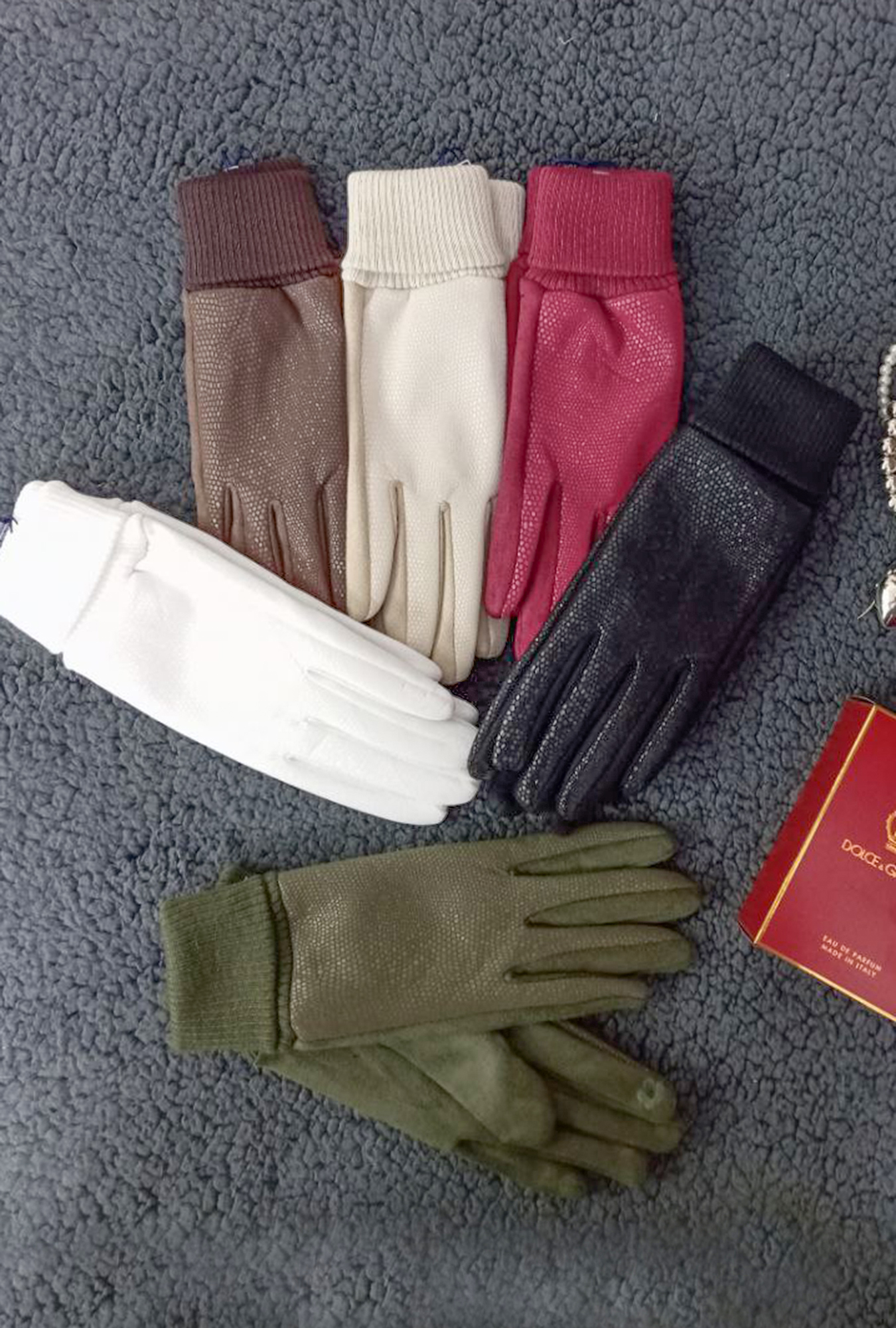 Красивые и удобные классические перчатки для прохладного времени года. Тыльная сторона из экокожи с изысканным змеиным принтом, на ладони - ткань под замшу, высокий вязаный манжет. Внутренний слой - тонкий велюр. Благодаря специальной нити, вплетёной на указательном пальце,  можно пользоваться смартфоном не снимая перчаток.