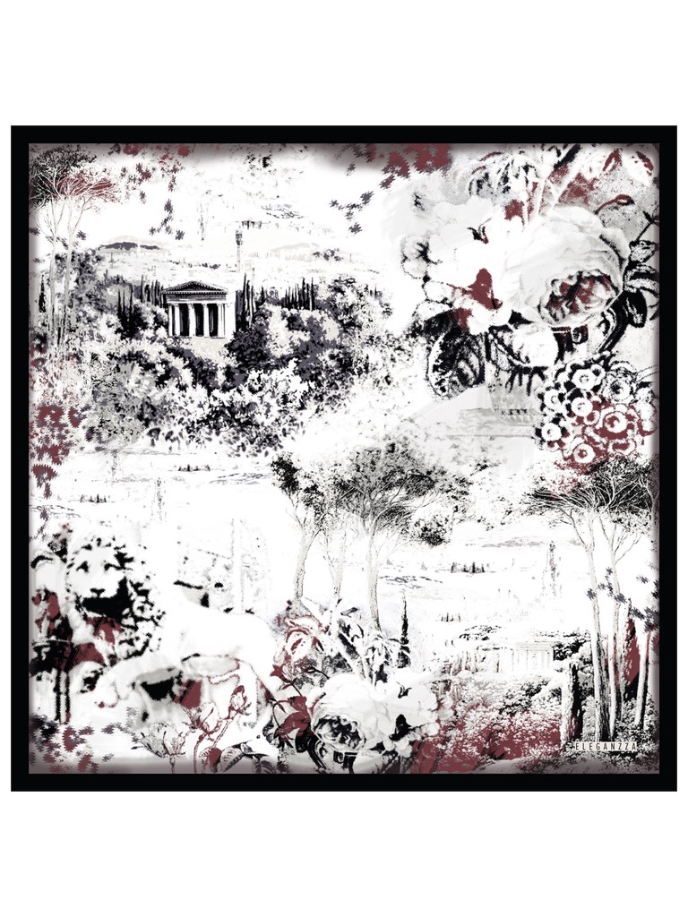 Платок женский торговой марки ELEGANZZA из натурального шелка. Графичные архитектурные мотивы и ботанические элементы в стиле флорентийских зарисовок. Деликатная ручная работа - подгибка на лицевую сторону.