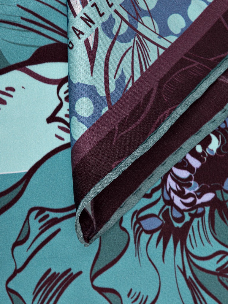 Платок женский торговой марки ELEGANZZA. Состав: 100% шелк, сатин. Тип подгибки: ручная подгибка на лицевую сторону. Размер: 53х53см.