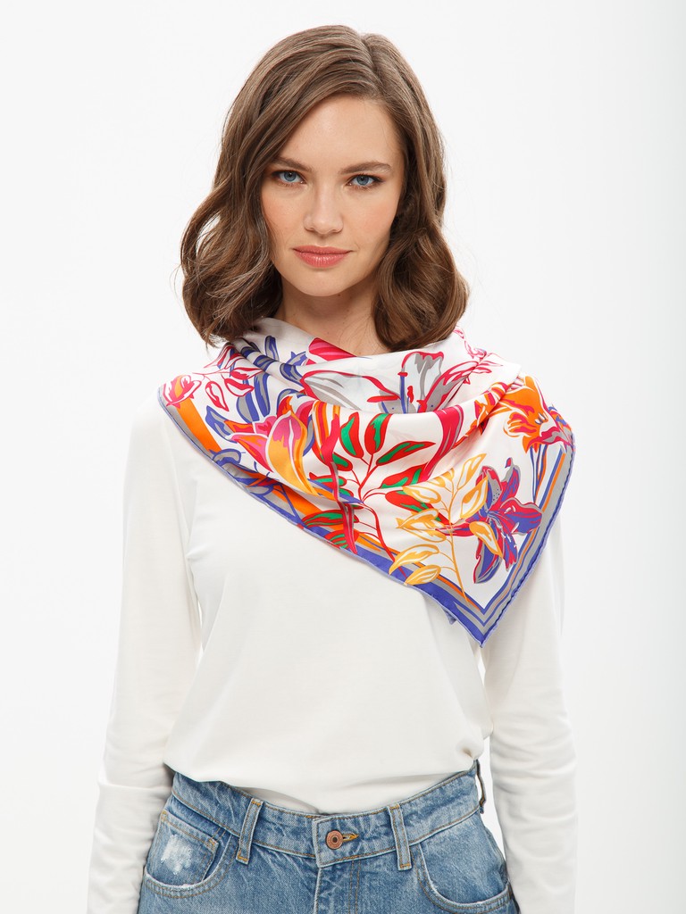 Платок женский торговой марки ELEGANZZA. Состав: 100% шелк, сатин, повышенной плотности (14mm). Тип подгибки: ручная подгибка на лицевую сторону. Размер: 86х86см.