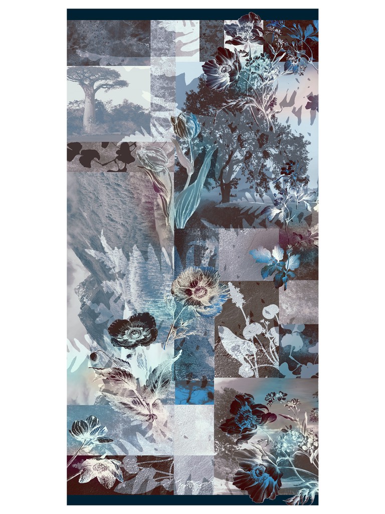 Платок женский торговой марки ELEGANZZA. Выполнен из мягкой шерсти и шелка. Изделие дополнено принтом, напоминающим фрагменты старой фотопленки под разными фильтрами. Края платка обработаны подгибкой с ресничками.