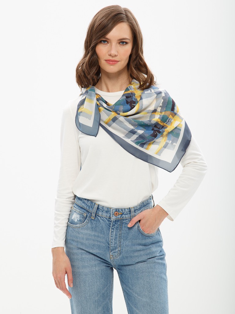 Платок женский торговой марки Labbra. Состав: 50% шелк, 50% вискоза. Тип подгибки: машинная подгибка. Размер: 100х100см.