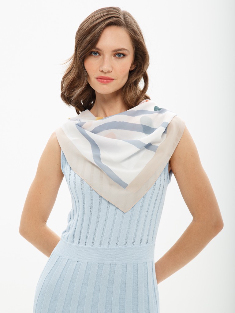 Платок женский торговой марки Labbra. Состав: 50% шелк, 50% вискоза. Тип подгибки: машинная подгибка. Размер: 100х100см.