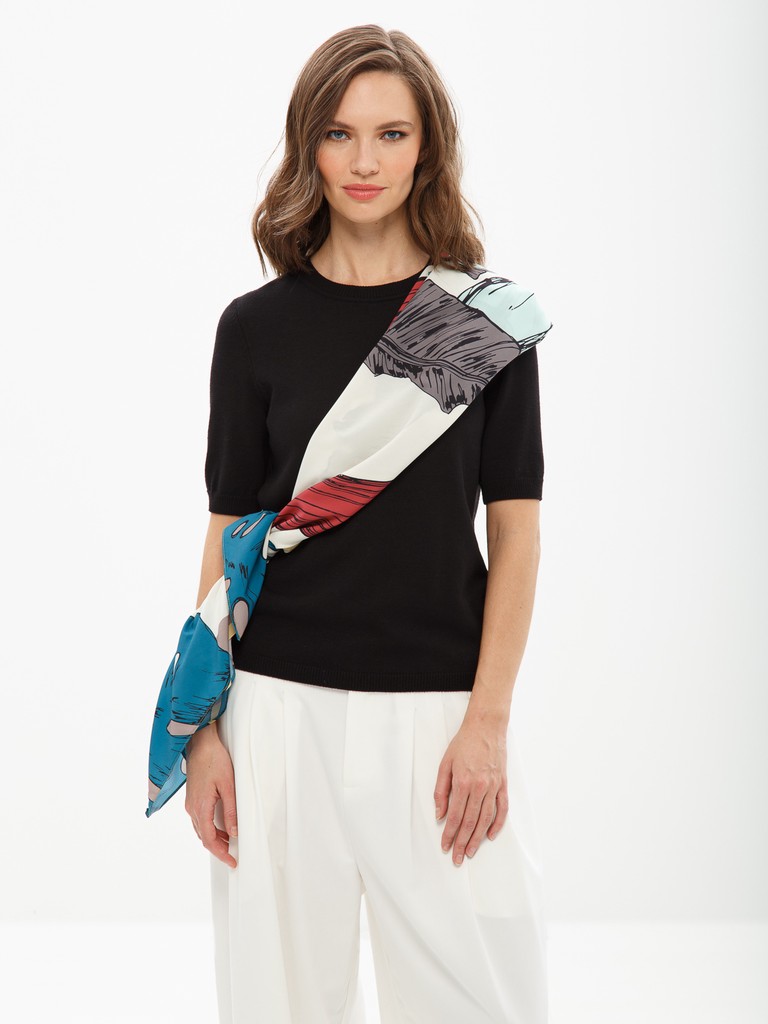 Платок женский торговой марки Labbra. Состав: 50% шелк, 50% вискоза. Тип подгибки: машинная подгибка. Размер: 120х120см.