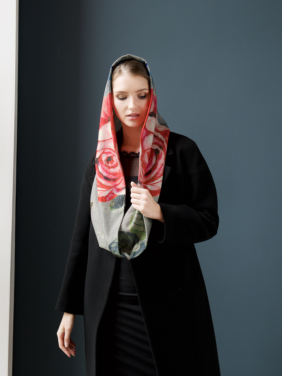 Особенности изделия: сложный принт/круговой шарф/двухслойный