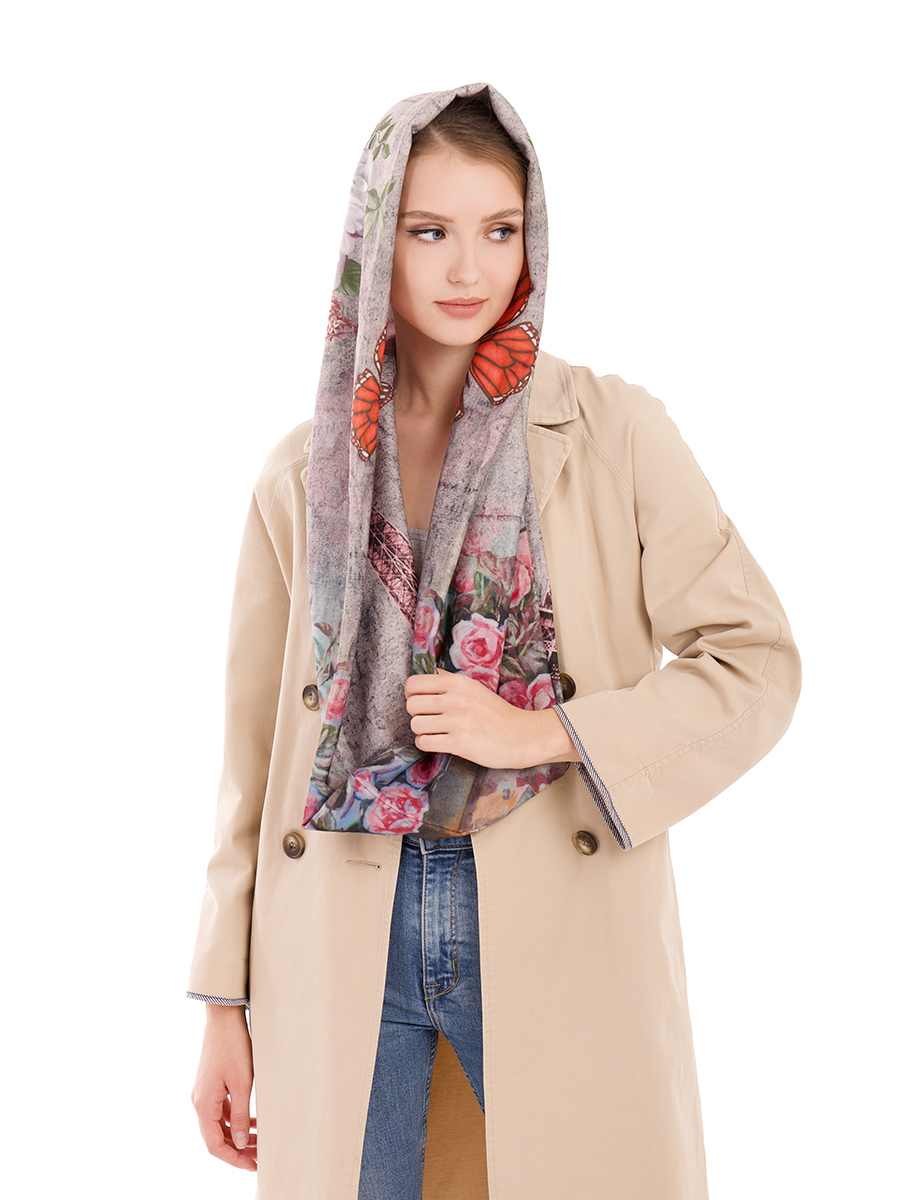 Особенности изделия: сложный принт/круговой шарф/двухслойный
