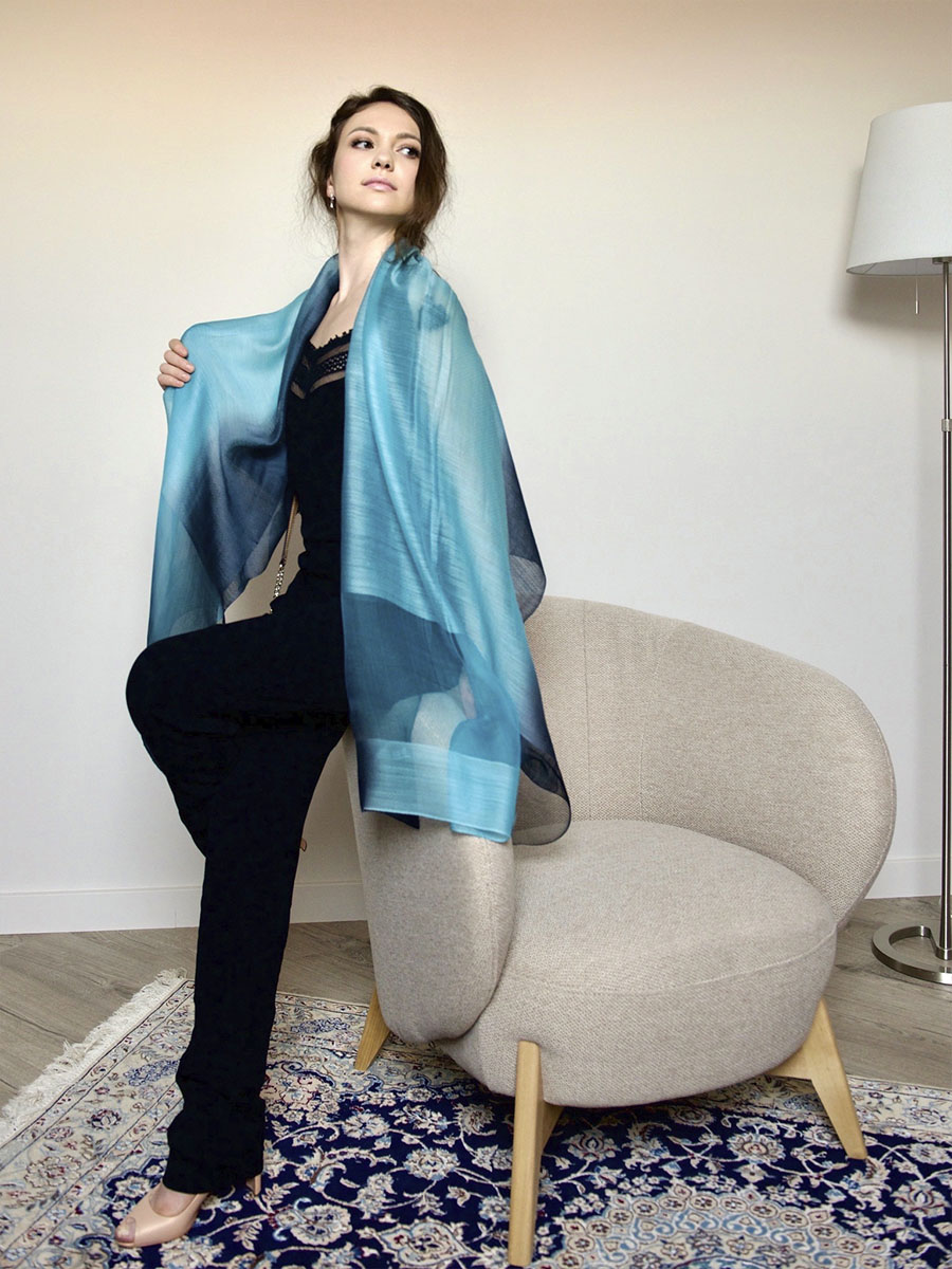 Изящный палантин из шелка и шерсти с переходом цвета