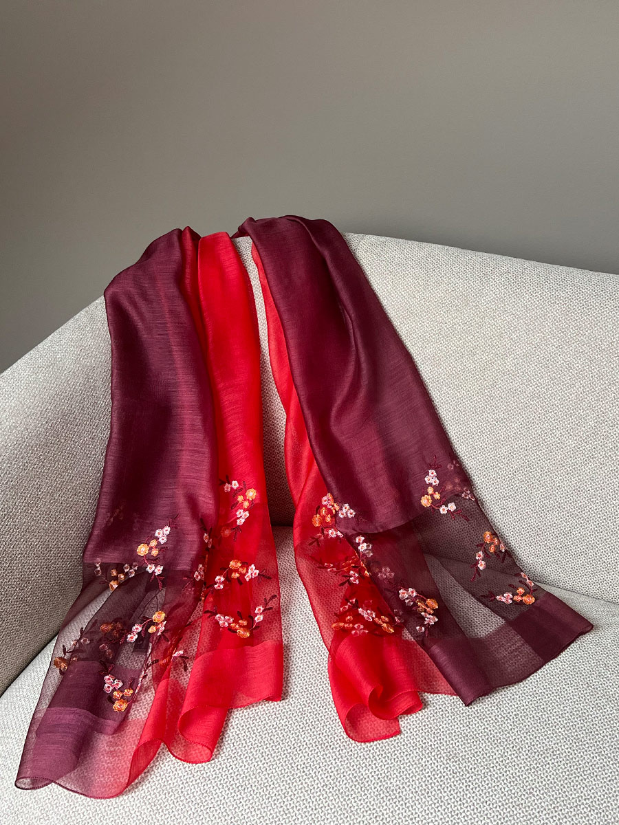 Особенности изделия: естественный блеск шёлка/ ажурная вышивка, сделанная вручную/ градиент цвета.