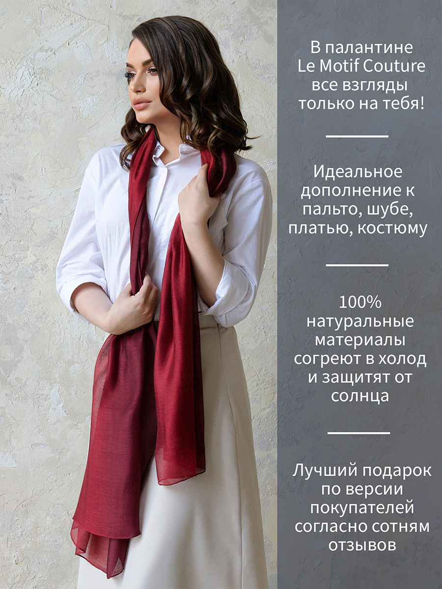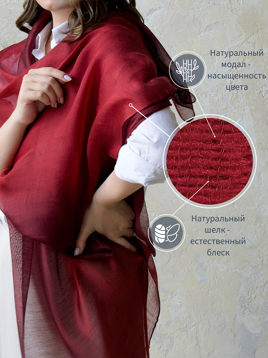 Яркий, привлекательный палантин из высококачественного шёлка с добавлением натурального модала создан на основе бестселлера, коллекции «Шёлковый путь» Этот стильный аксессуар сделает ваш образ еще более женственным и элегантным, а легкая, воздушная текстура ткани подарит ощущение необычайного комфорта. Уникальная цветовая палитра палантина с переходом цвета подчеркнет вашу индивидуальность и выделит среди остальных. С таким аксессуаром вы всегда будете чувствовать себя уверенно и останетесь довольны тем, как вы выглядите.