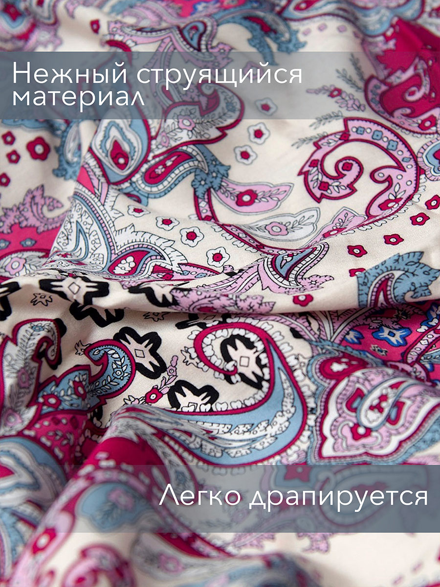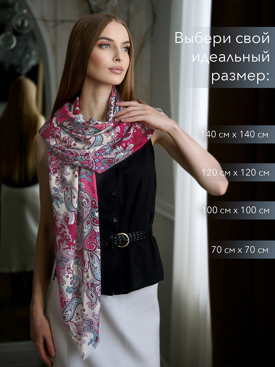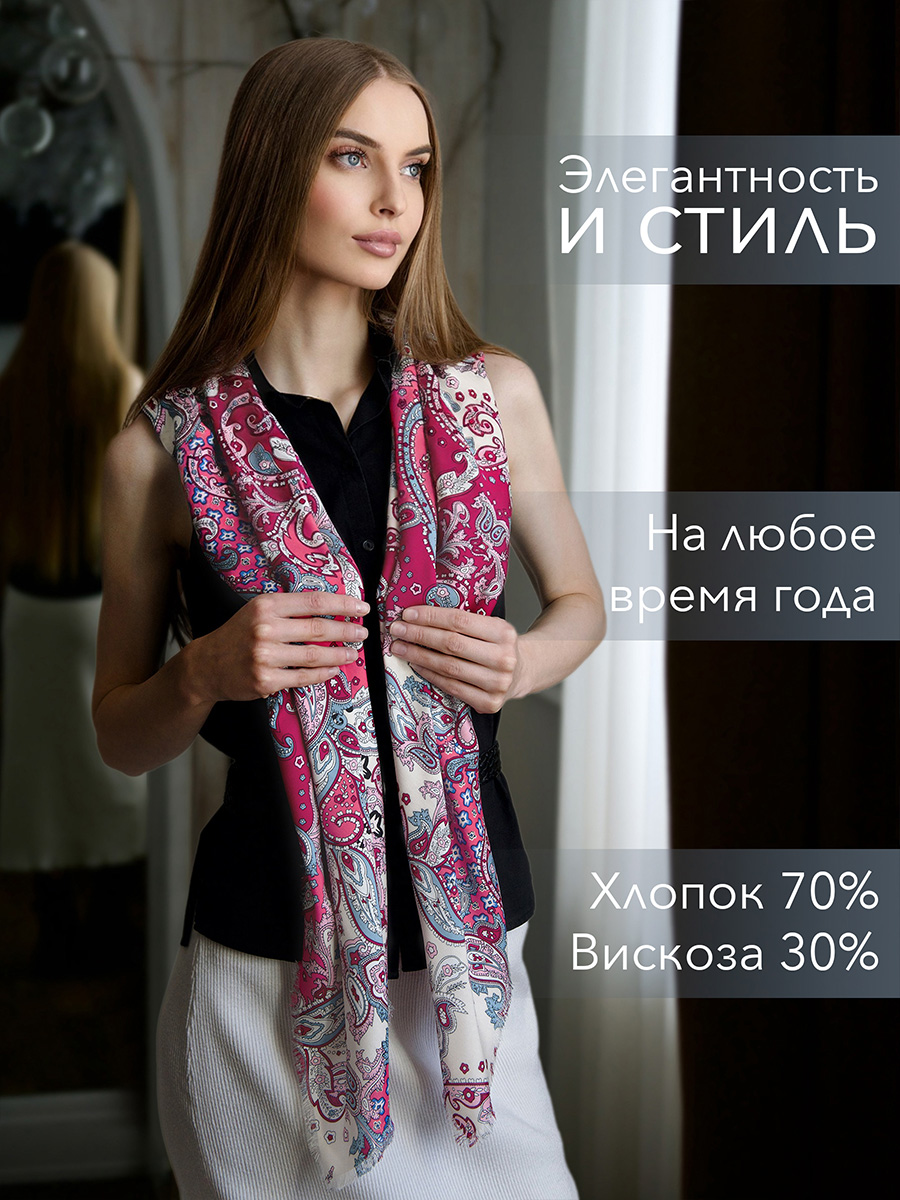 Оригинальный платок из качественного хлопка и вискозы, нежный и мягкий на ощупь, гармонично подойдет для любого образа, а необычный принт, изображающий цветочный орнамент, придаст обворожительности и притягательности вашему наряду. Большой размер платка позволяет завязывать его множеством вариантов, что делает вас неповторимой и привлекательной, а легкий струящийся материал будет ежедневно дарить ощущение комфорта и уюта.
