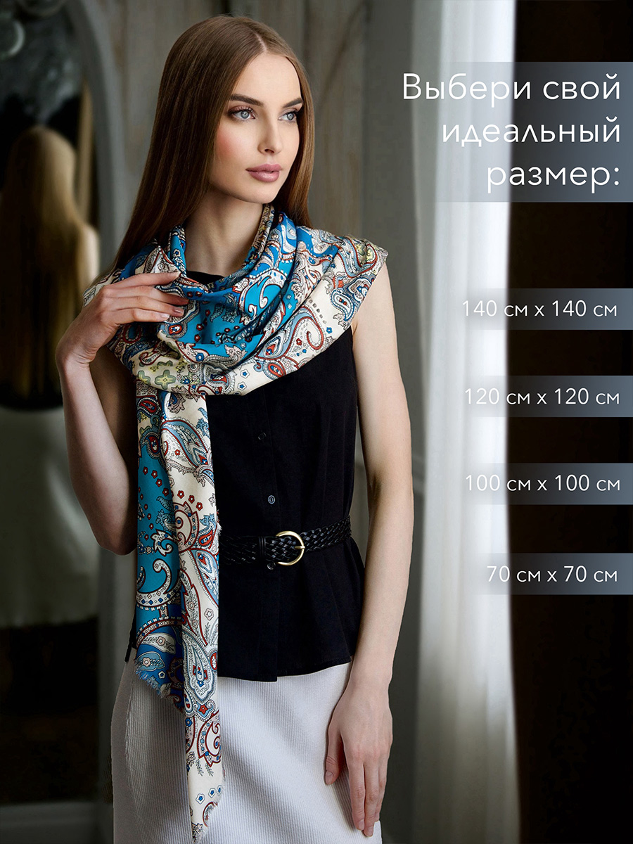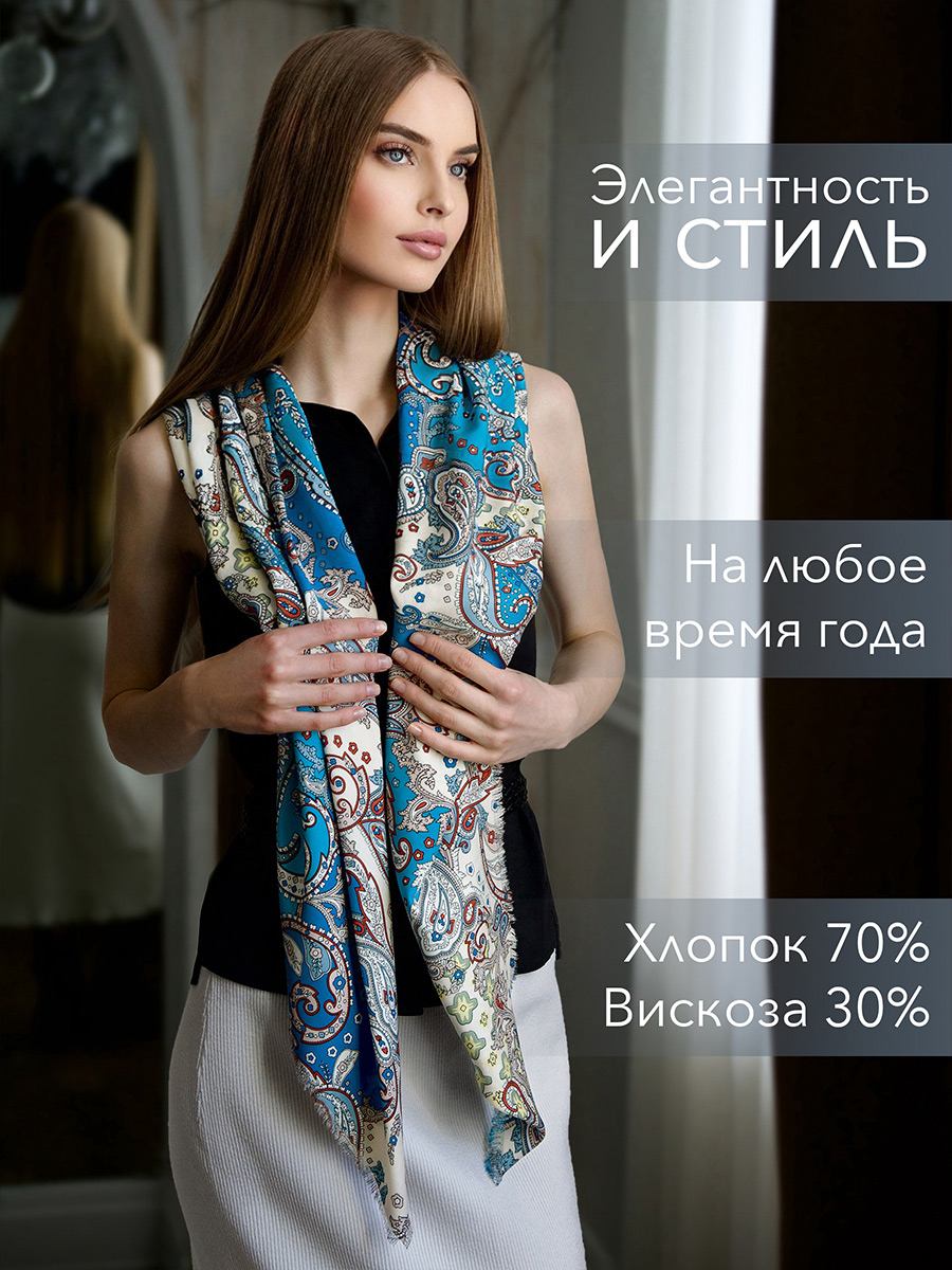 Оригинальный платок из качественного хлопка и вискозы, нежный и мягкий на ощупь, гармонично подойдет для любого образа, а необычный принт, изображающий цветочный орнамент, придаст обворожительности и притягательности вашему наряду. Большой размер платка позволяет завязывать его множеством вариантов, что делает вас неповторимой и привлекательной, а легкий струящийся материал будет ежедневно дарить ощущение комфорта и уюта.