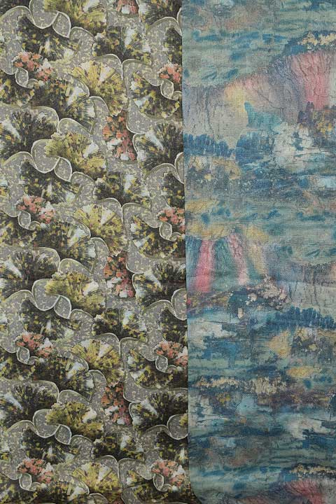 Палантин мягкий, плотный, теплый, двусторонний. Одна сторона - абстракция "бутон", другая сторона - абстракция "камни". Края палантина заканчиваются кромкой, концы - бахрома.