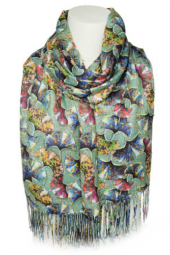 Палантин мягкий, плотный, двухсторонний. Одна сторона - один цвет, другая сторона - другой цвет. На фото показана одна и другая сторона палантина. Края палантина заканчиваются кромкой, концы - бахрома.