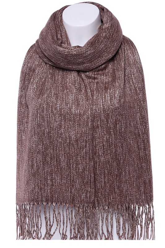 Мягкий, теплый палантин. Одна сторона- меланж, другая сторона- темная. На двух противоположных краях кисти, два других заканчиваются кромкой.