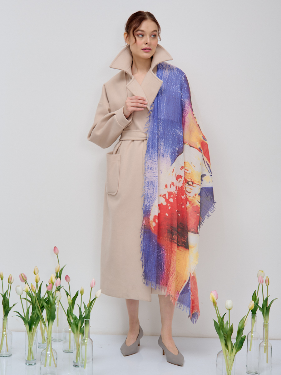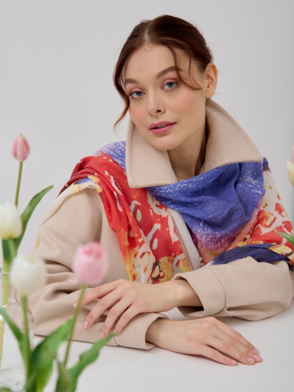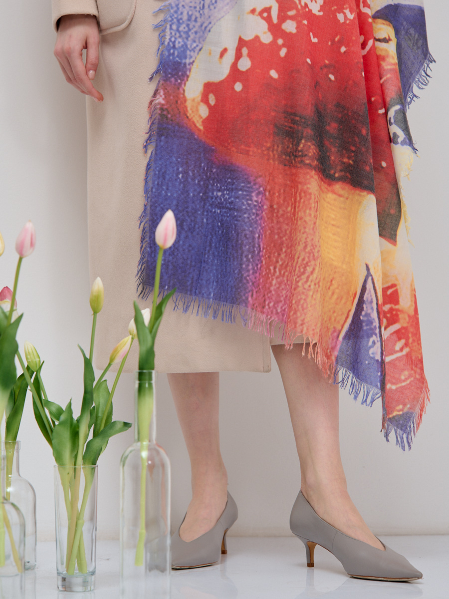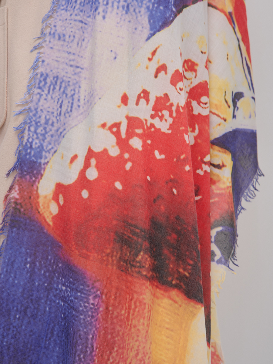 Большой, красивый палантин. Рисунок на полотно наносится вручную. Края изделия украшены бахромой. Только ручная стирка.