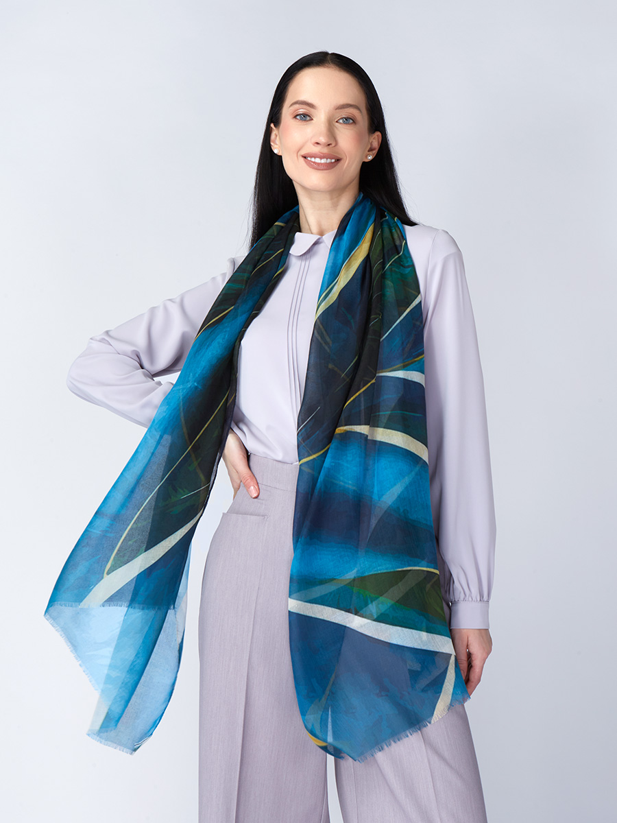 Большой, мягкий, тонкий и очень нежный палантин с рисунком в стиле арт-деко. Только ручная стирка.