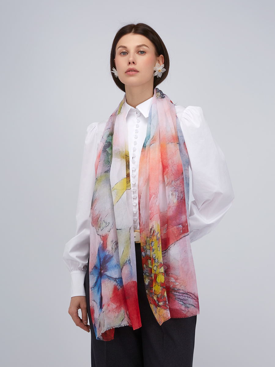 Большой, мягкий, тонкий и очень нежный палантин с рисунком в стиле арт-деко. Только ручная стирка.