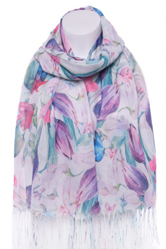 Мягкий, тонкий палантин из хлопковой ткани. Края палантина - кромка, концы - бахрома.