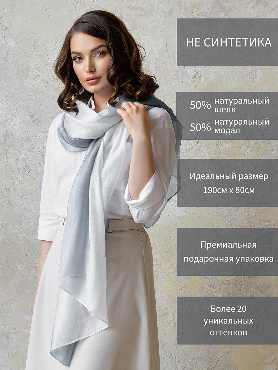 Яркий, привлекательный палантин из высококачественного шёлка с добавлением натурального модала создан на основе бестселлера, коллекции «Шёлковый путь» Этот стильный аксессуар сделает ваш образ еще более женственным и элегантным, а легкая, воздушная текстура ткани подарит ощущение необычайного комфорта. Уникальная цветовая палитра палантина с переходом цвета подчеркнет вашу индивидуальность и выделит среди остальных. С таким аксессуаром вы всегда будете чувствовать себя уверенно и останетесь довольны тем, как вы выглядите.