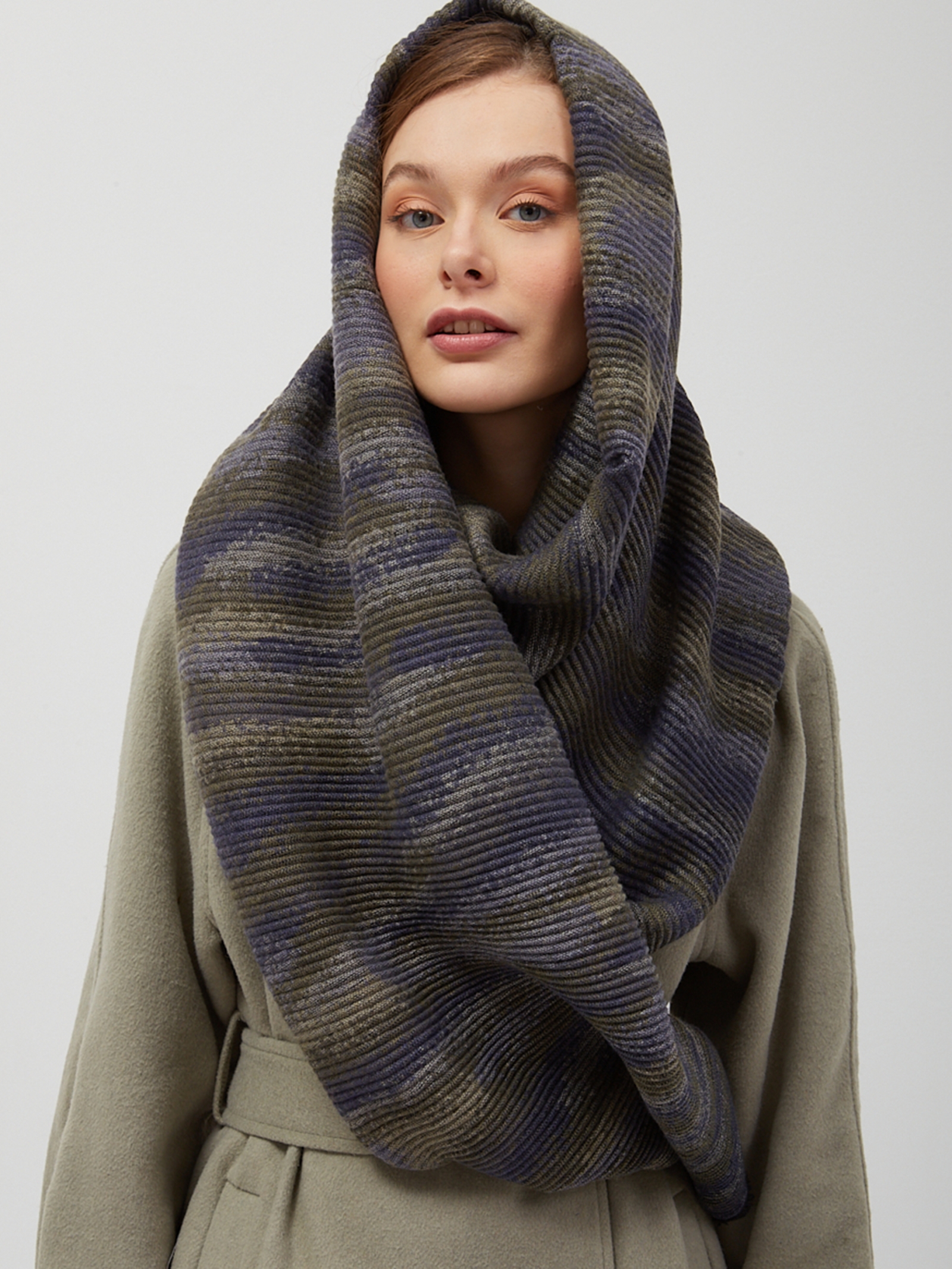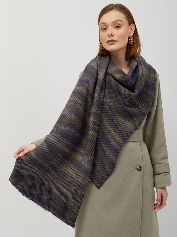 Большой, мягкий, двусторонний палантин с принтом. Края палантина украшены бахромой. Только ручная стирка. Шерсть