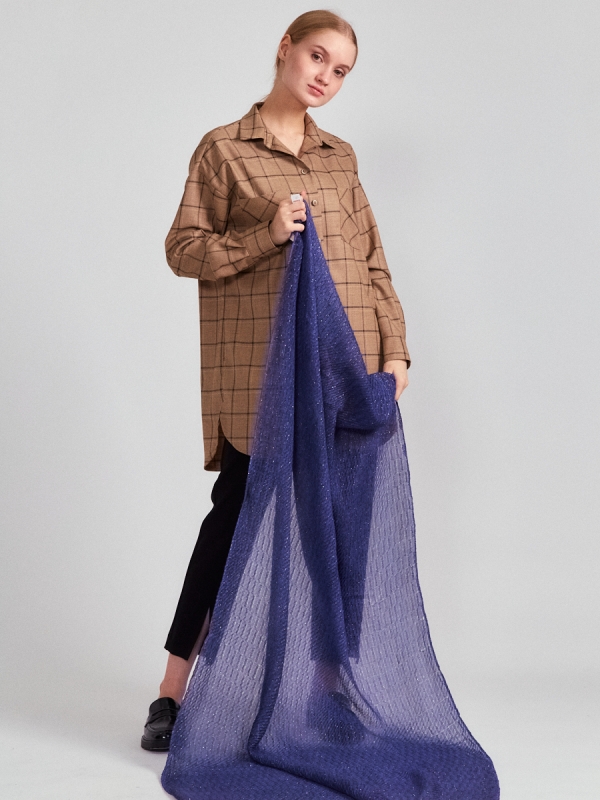 Большой,красивый палантин, выполненный из гофрированной ткани и украшенный тонкими нитями люрекса. Края изделия аккуратно подшиты. Только ручная 85% вискоза, 15% люрекс
