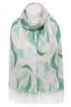 Палантин понравился, расцветка как на фото, достаточно широкий и длинный. На ощупь чуть шелковистый, скорее всего от вискозы в составе