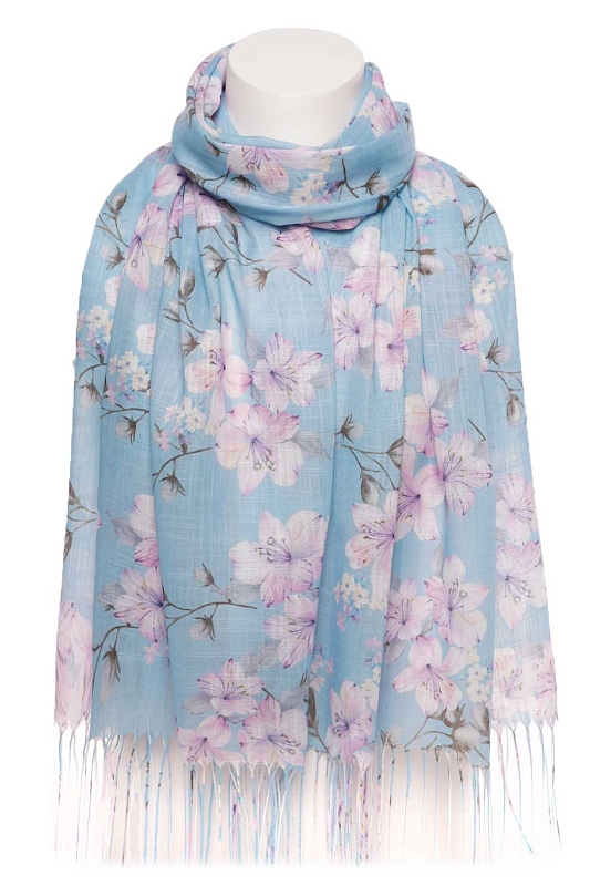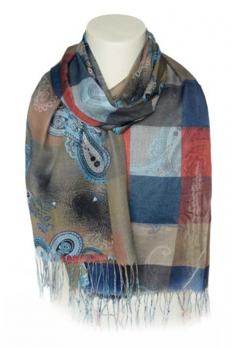 Легкий, тонкий палантин. Края палантина заканчиваются кромкой, концы - бахрома.