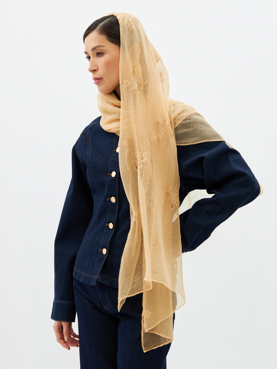 Представляем уникальное пополнение для ассортимента вашего бутика – женский палантин BB-1352-20 от TANTINO. Этот аксессуар, разработанный и произведенный нами с полным циклом на собственном производстве, является воплощением элегантности и качества, гарантируя востребованность среди ваших покупательниц.Преимущества для ваших клиентов и вашего бизнеса:Изысканный дизайн: Большой двусторонний палантин выполнен из тонкого жатого шифона, что придает ему невесомость и утонченность. Легкая текстура ткани и струящийся силуэт делают его идеальным дополнением к любому образу.Актуальный принт: Деликатная вышивка в стиле «арт-деко» добавляет изделию особую роскошь и современное звучание, позволяя легко интегрировать палантин как в повседневные, так и в вечерние комплекты.Универсальность: Двусторонняя конструкция и оптимальный размер обеспечивают множество вариантов ношения, что делает палантин незаменимым элементом гардероба и привлекательным предложением для широкого круга покупателей.Практичность в уходе: Изделие легко в уходе – допускается машинная деликатная стирка, что является значимым преимуществом для современных, активных женщин.Мы гарантируем безупречное качество каждого палантина, от тщательного подбора тканей и создания лекал до аккуратной обработки краев. Инвестируйте в востребованные аксессуары TANTINO, чтобы предложить своим клиентам эксклюзивные изделия и увеличить прибыль вашего магазина.
