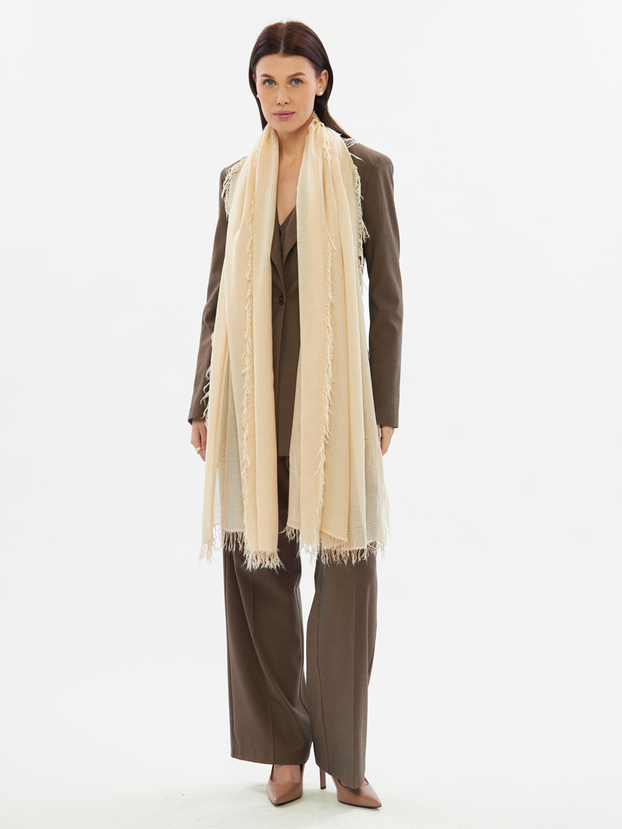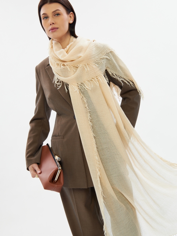 Палантин женский бежевый двусторонний из жатого шифона DRK-16-3