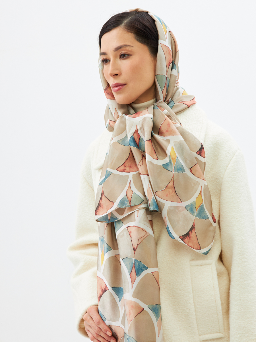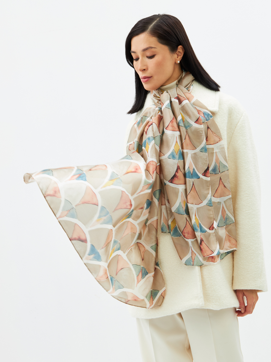 Элегантный принт "арт-деко": Изысканный рисунок придает палантину особую привлекательность, подчеркивая статус и вкус.