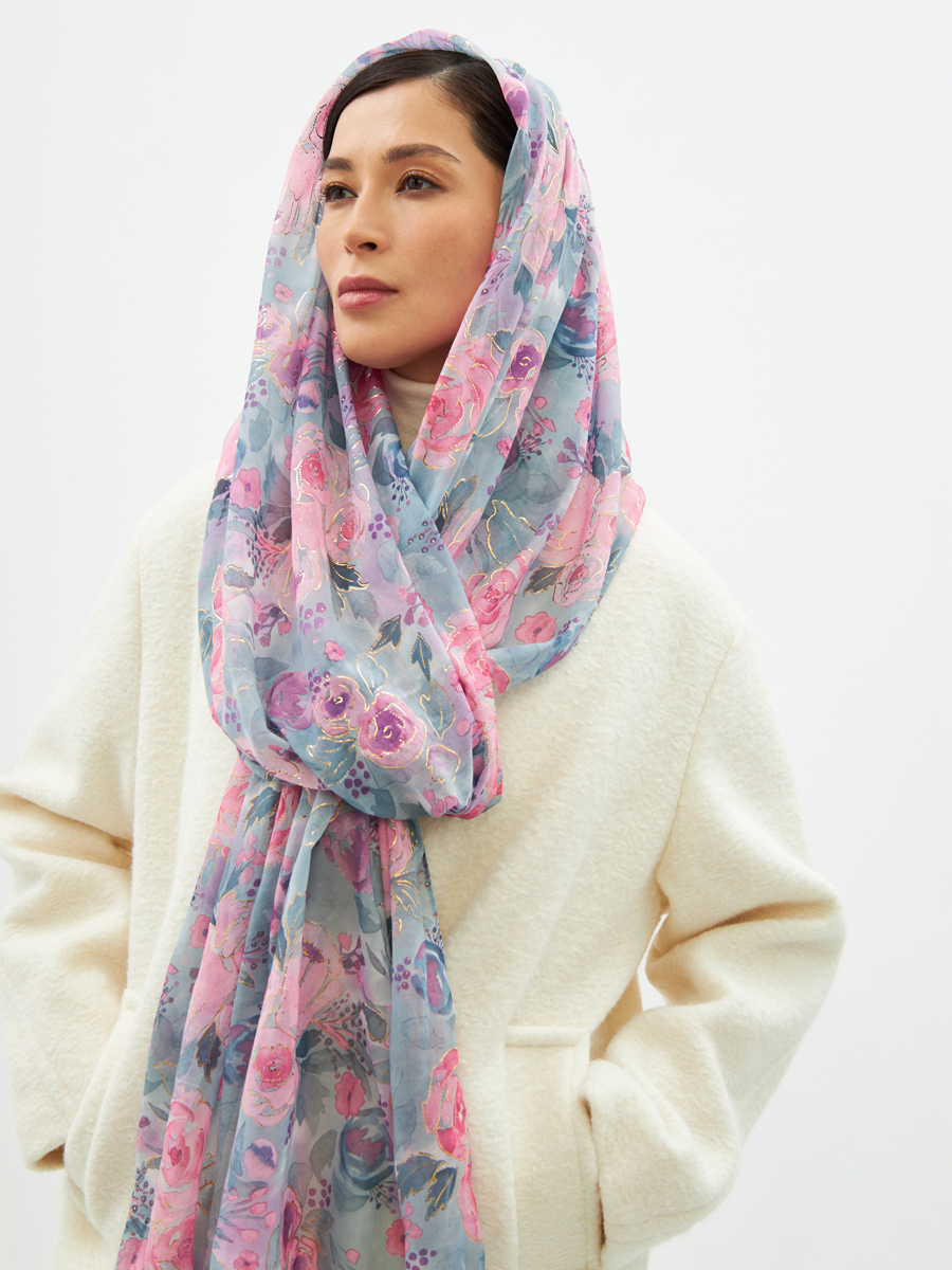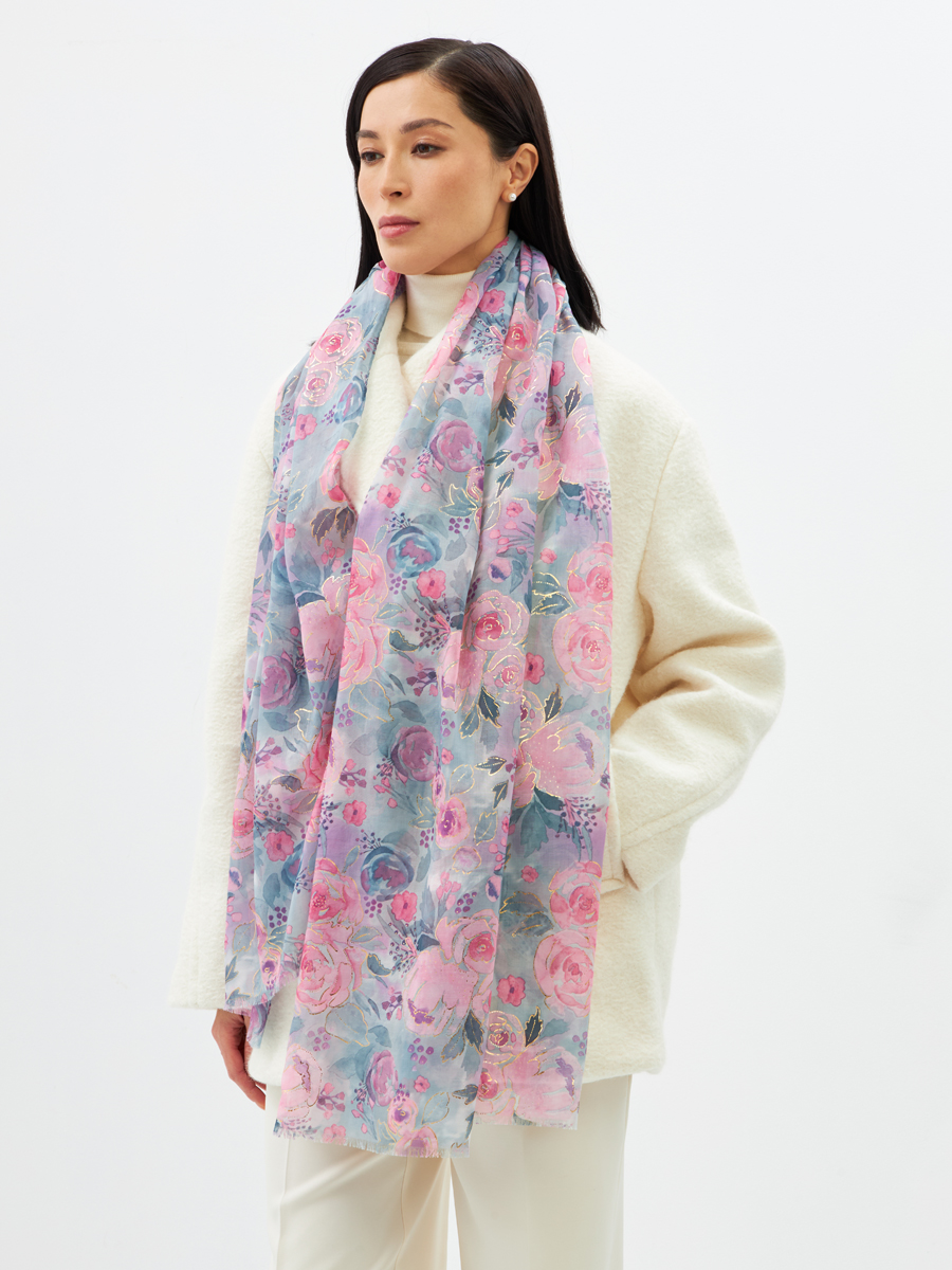 Большой, красивый двусторонний палантин с рисунком в стиле "арт-деко" и очень мягкой и нежной текстурой ткани. Края изделия аккуратно обработаны. Машинная деликатная стирка.
