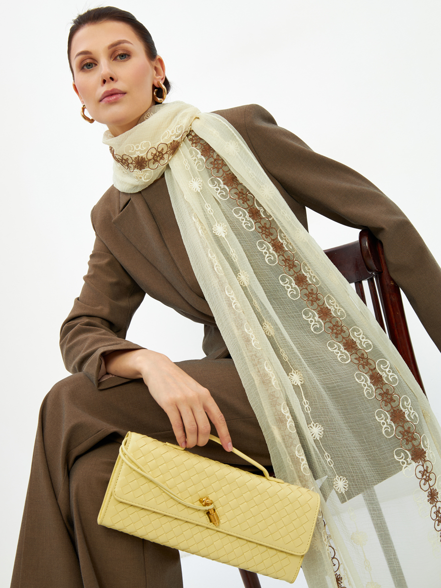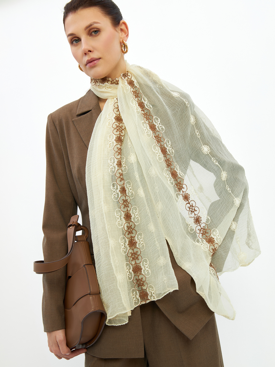 Уважаемые партнеры, представляем вашему вниманию элегантный двусторонний палантин, призванный обогатить ассортимент вашего бутика. Этот аксессуар, созданный нашими дизайнерами и мастерами в рамках полного цикла производства, гарантирует безупречное качество и актуальность, привлекая взыскательных покупательниц.Ключевые преимущества для вашего бизнеса:Изысканный дизайн: Палантин из тонкого жатого шифона отличает роскошная вышивка в стиле арт-деко, выполненная с обеих сторон. Это уникальное художественное решение подчеркивает статус изделия и придает ему особую привлекательность.Гарантия качества TANTINO: Мы гордимся собственным производством, что позволяет контролировать каждый этап, от лекал до обработки краев. Высокое качество материалов и пошива обеспечивает долговечность и сохранение первоначального вида.Универсальность и легкий уход: Двусторонний дизайн и воздушная текстура шифона делают палантин идеальным дополнением к любому образу. Возможность машинной деликатной стирки — дополнительный аргумент для покупателей, ценящих практичность.Предлагая этот палантин, вы инвестируете в продукт, который не только выделяется на фоне конкурентов, но и обеспечивает стабильно высокий спрос. Увеличьте прибыль вашего бизнеса с эксклюзивными аксессуарами от TANTINO.